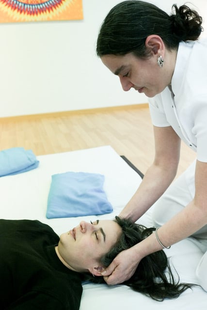 Die Behandlung findet auf einem Futon auf dem Boden statt.